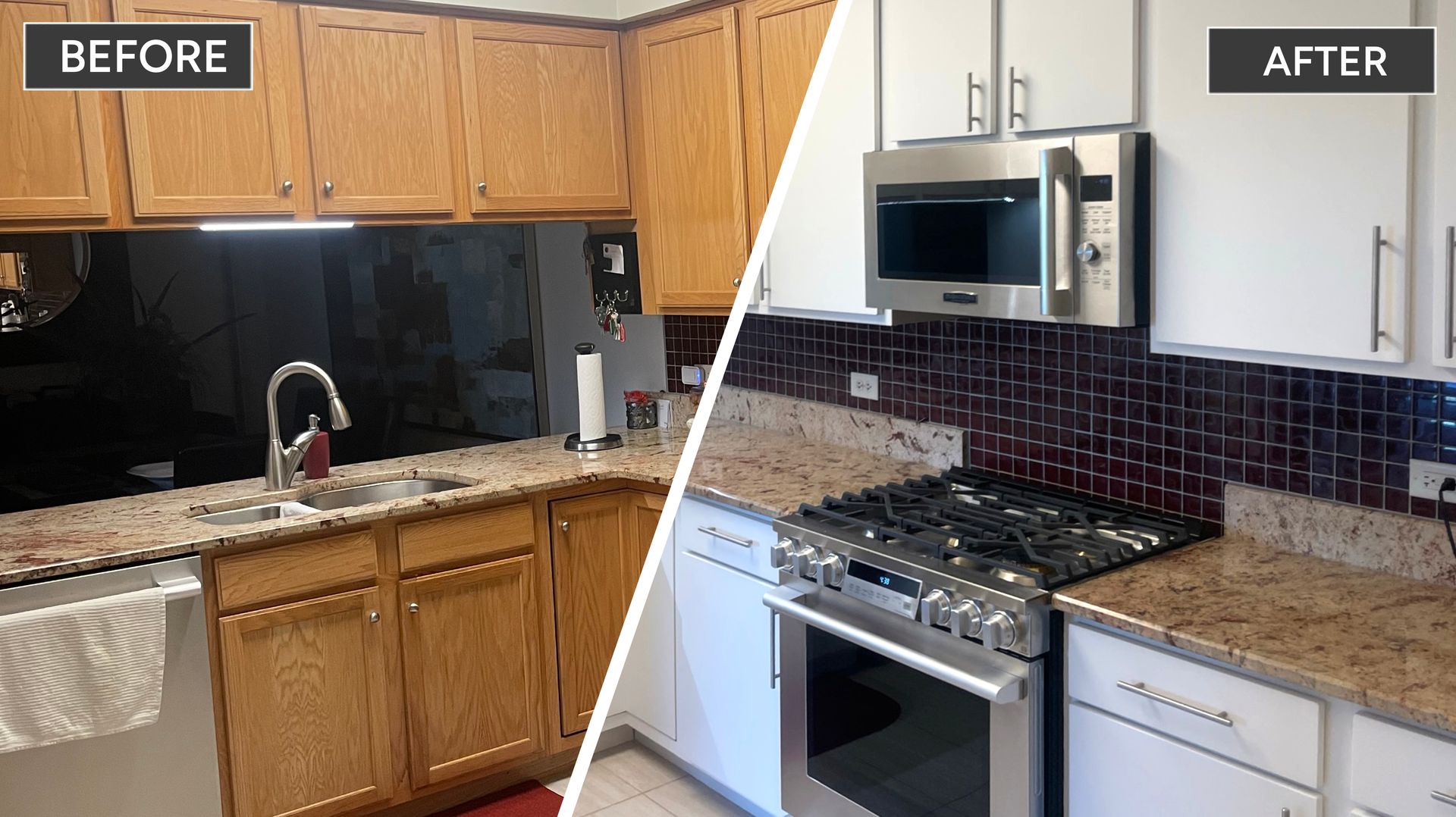 We’ve spent thousands of hours engineering a process that replaces what you see and touch (doors, drawers, finishes) while keeping your existing cabinet layout intact. That means: